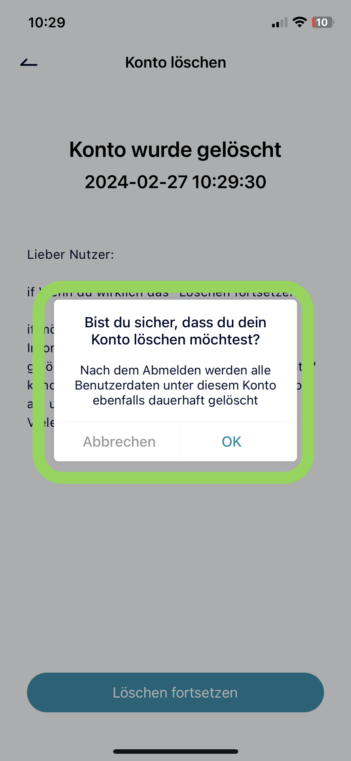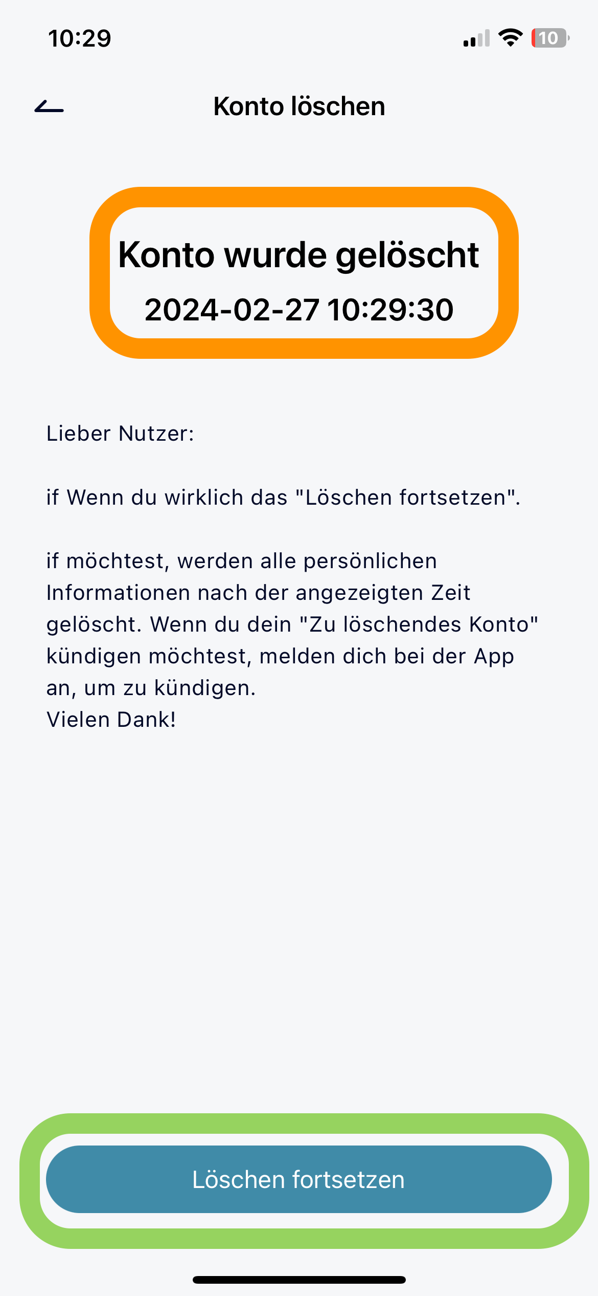 Wichtig 2: Möchtest du die Löschung der Daten widerrufen, dann musst du dich nur erneut in der App innerhalb von 14 Tagen mit den Anmeldedaten anmelden!