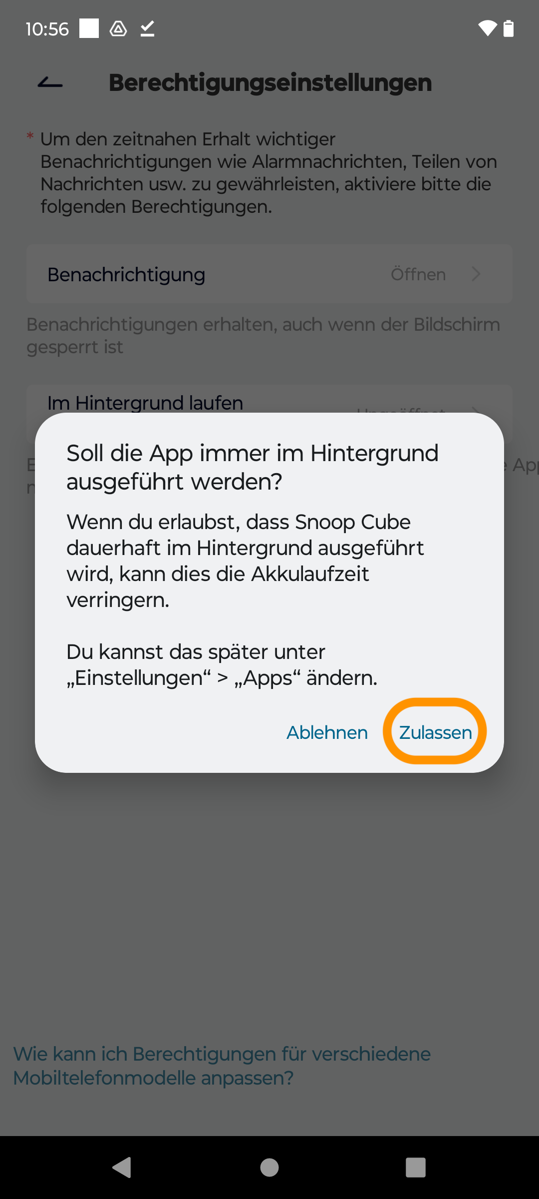 3. Bestätige bitte die Aktivierung in dem du auf "Zulassen" drückst!