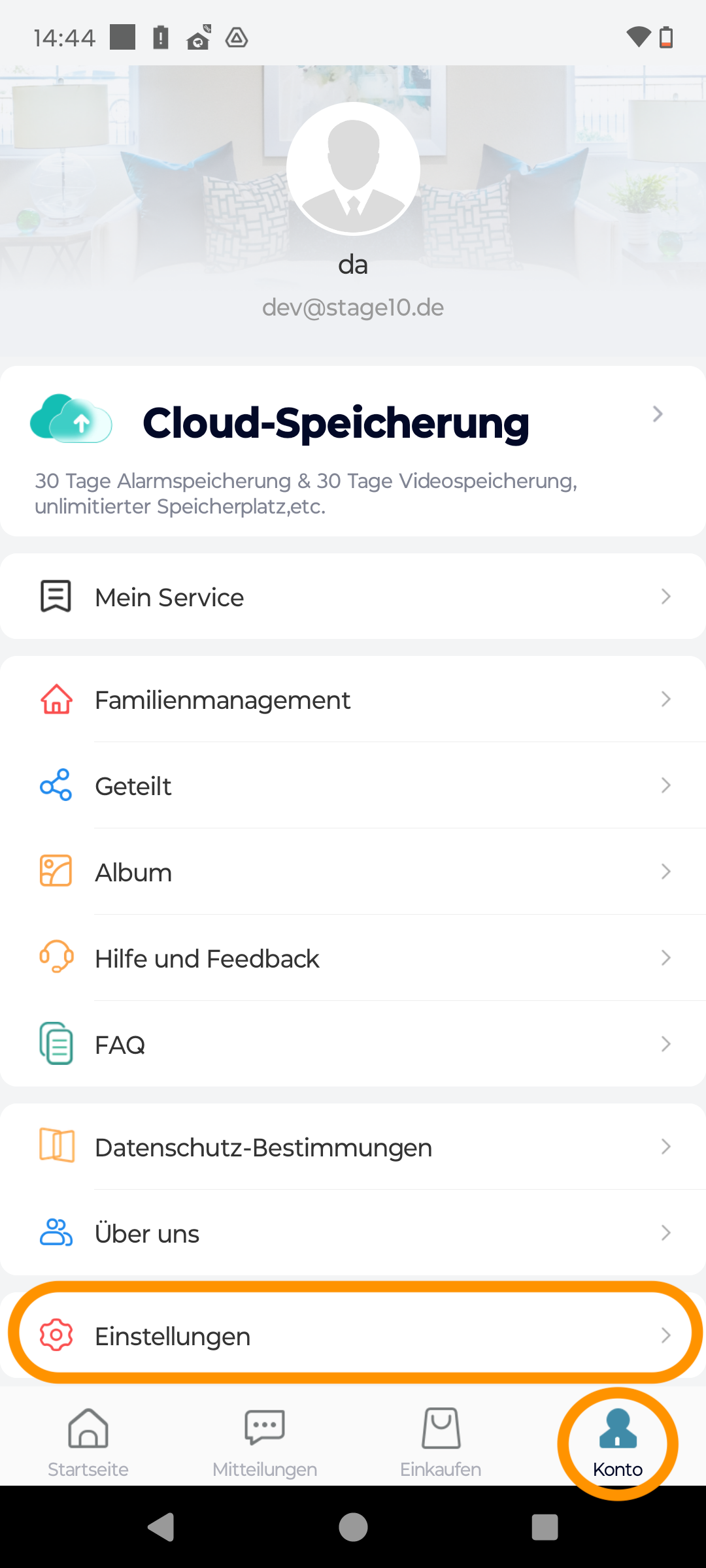 6.1 Wenn bei dir der wichtige Hinweis in der App nicht auftaucht, dann gehe einfach in der App in dein Konto und weiter zu den Einstellungen!