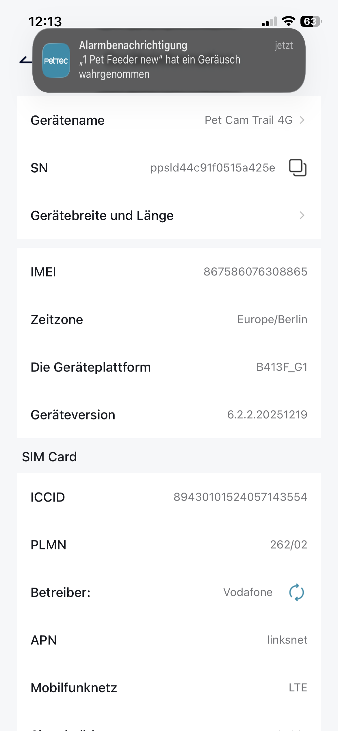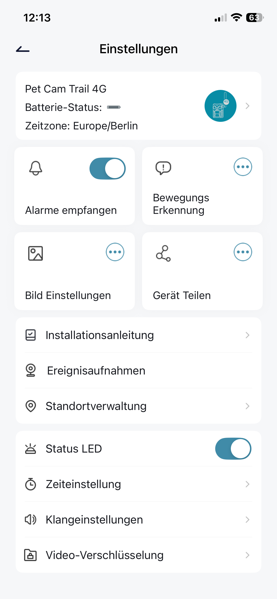 2. Nun bist du in den kameraspezifischen Einstellungen. Nun drücke ganz oben auf das Feld mit dem Kamera-Icon, anschließend gelangst du auf eine Informationsseite der Kamera.