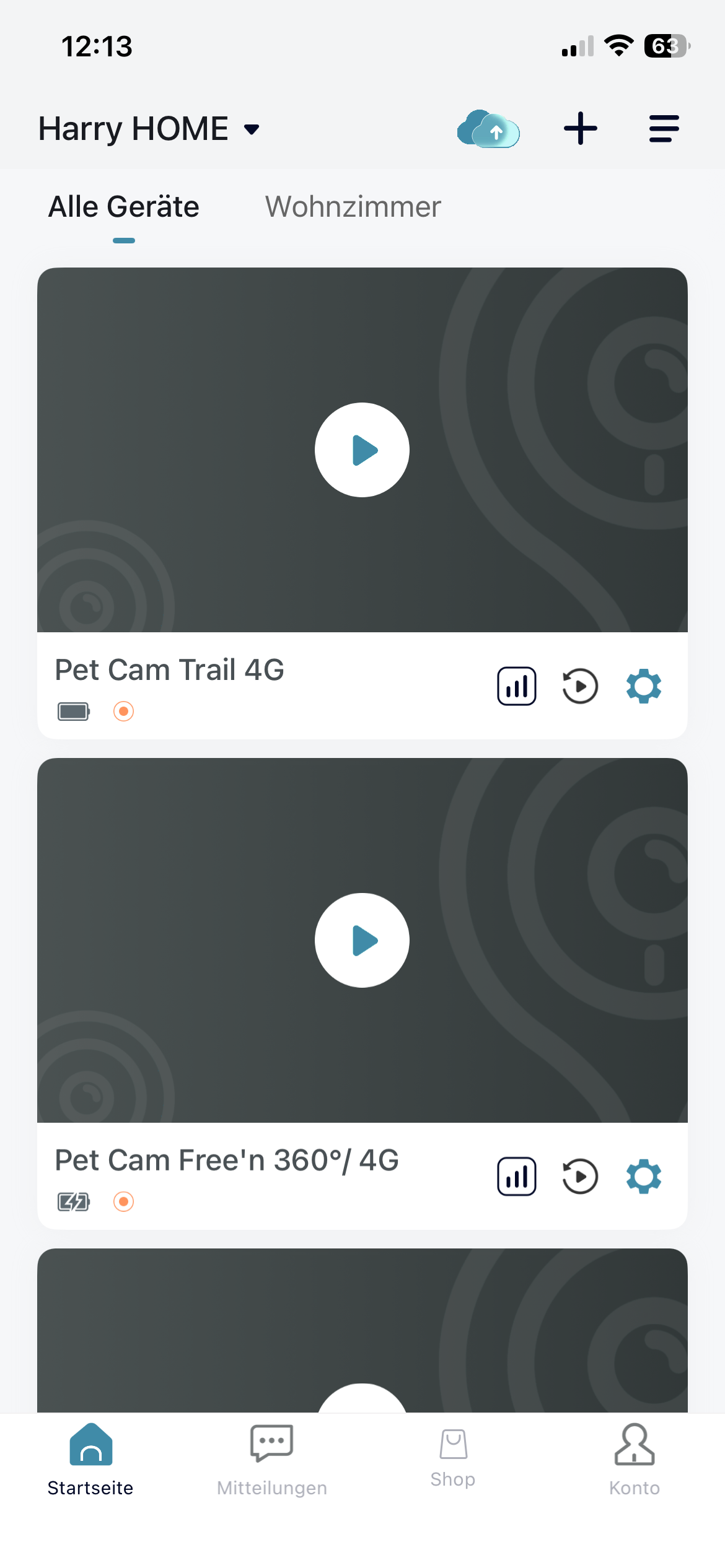 - Wähle die Kamera, deren Bezeichnung geändert werden soll. Drücke dann anschließend auf das Zahnrad-Icon.