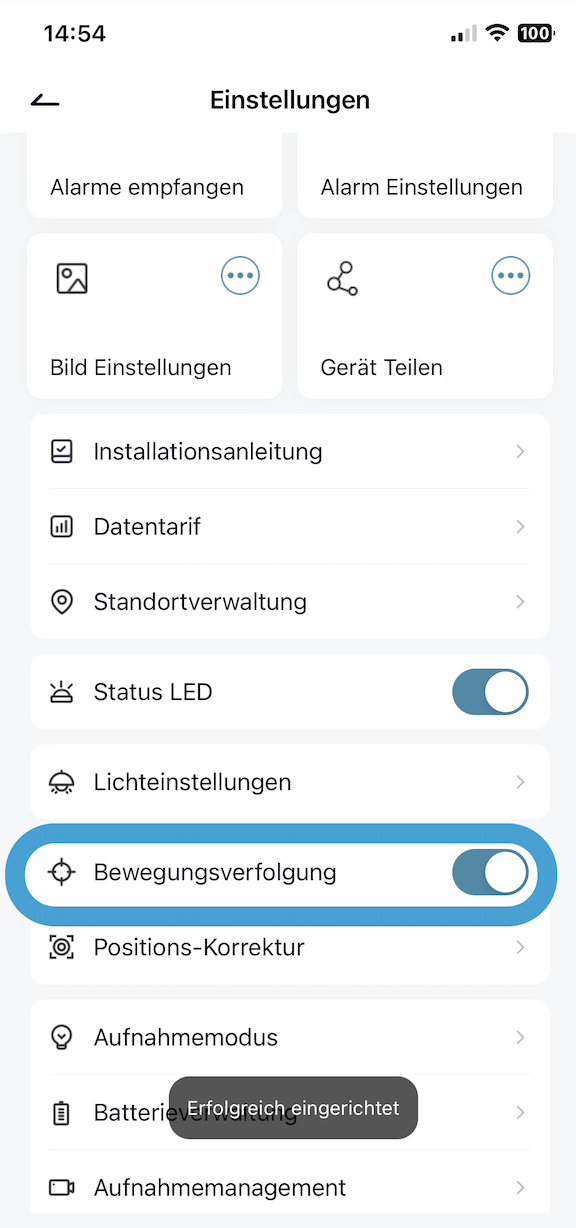 Die Bewegungsverfolgung kannst du in den Kamera-spezifischen Einstellungen der oben genannten Geräte finden. Du musst dazu lediglich die Funktion einschalten und schon verfolgt die Kamera über die Schwenkbewegung die Bewegung eines Objektes, sofern das Objekt in Sichtweite der Kamera ist.