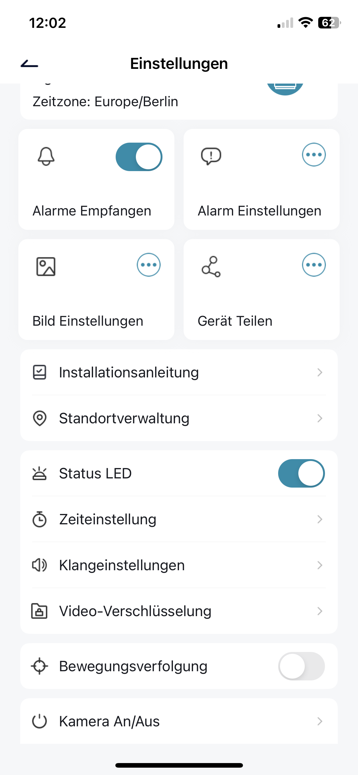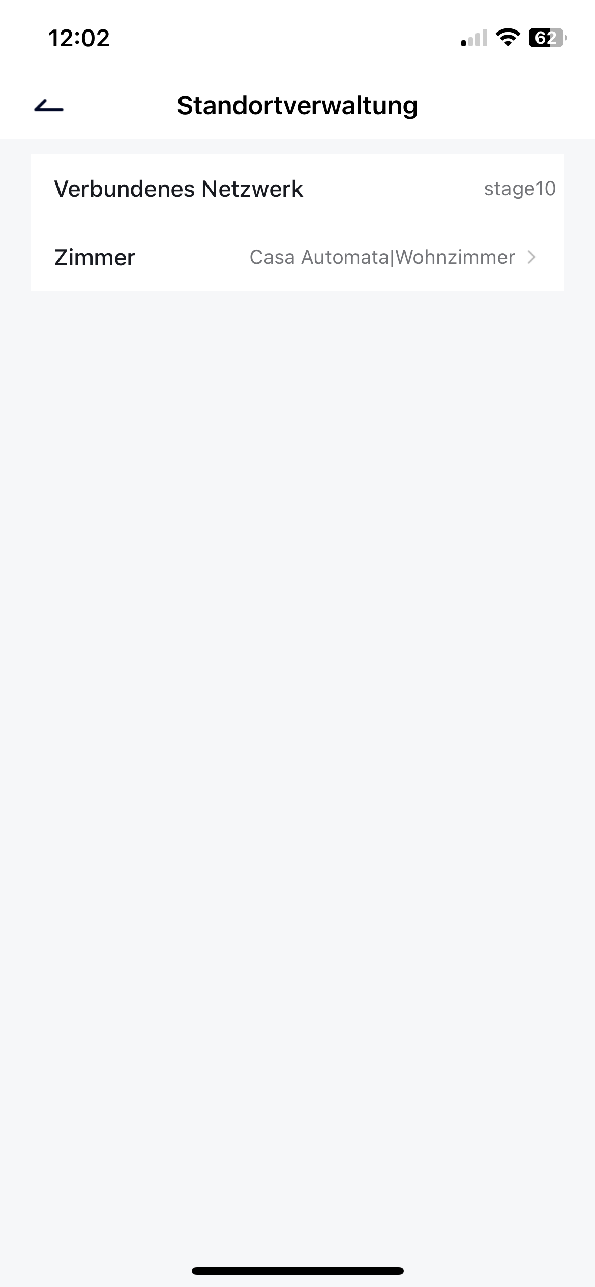 2. Nun siehst du die Information in welchen Netzwerk sich deine Kamera befindet und welchen Familie / welchem Raum du die Kamera zugeordnet hast. Drücke nun auf die Zimmer Info, damit du die Zuordnung ändern kannst.