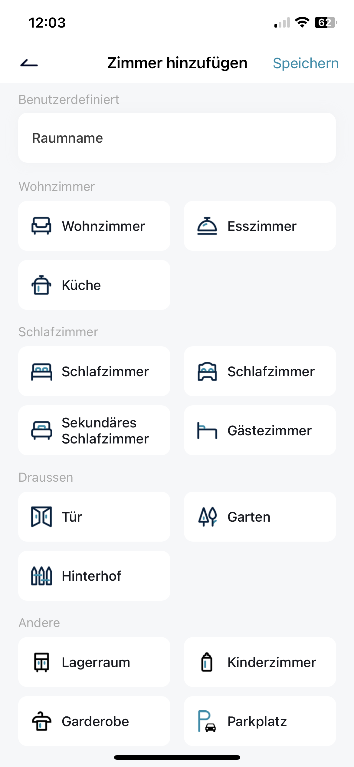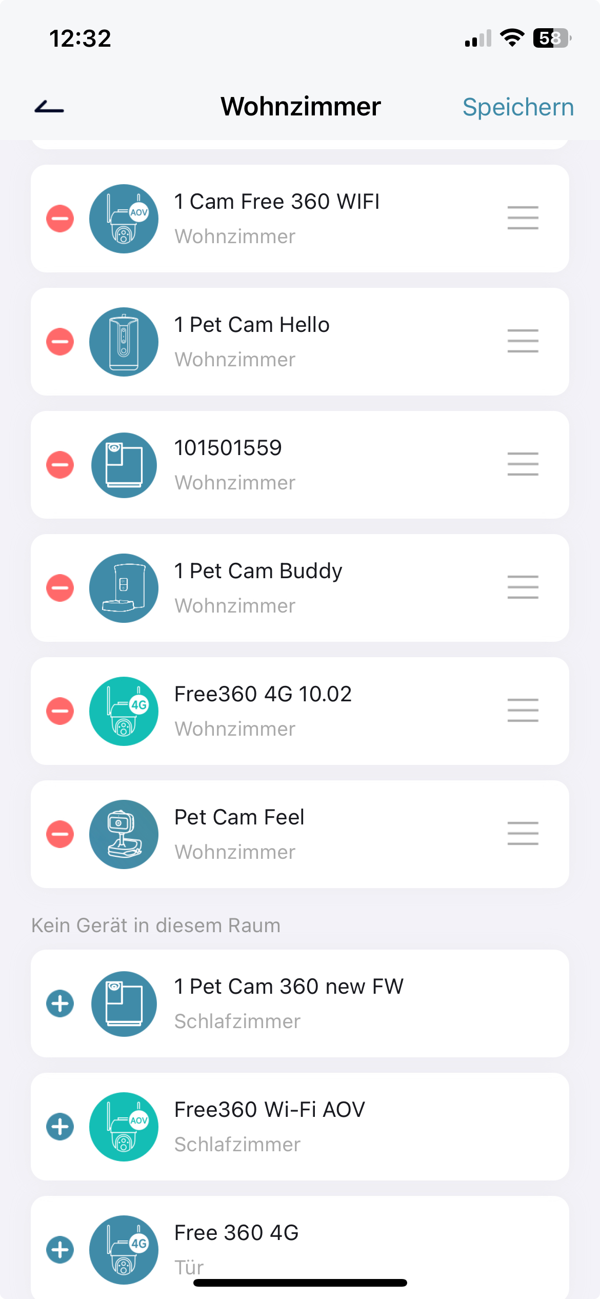 Im Verbindungsprozess einer jeder Kamera lässt sich die Kamera einem Raum zuordnen. Diese Zuordnung kann in den allgemeinen Einstellungen wieder aufgehoben oder einem anderen Raum zugeordnet werden. Es können auch Räume angelegt und wieder gelöscht werden.