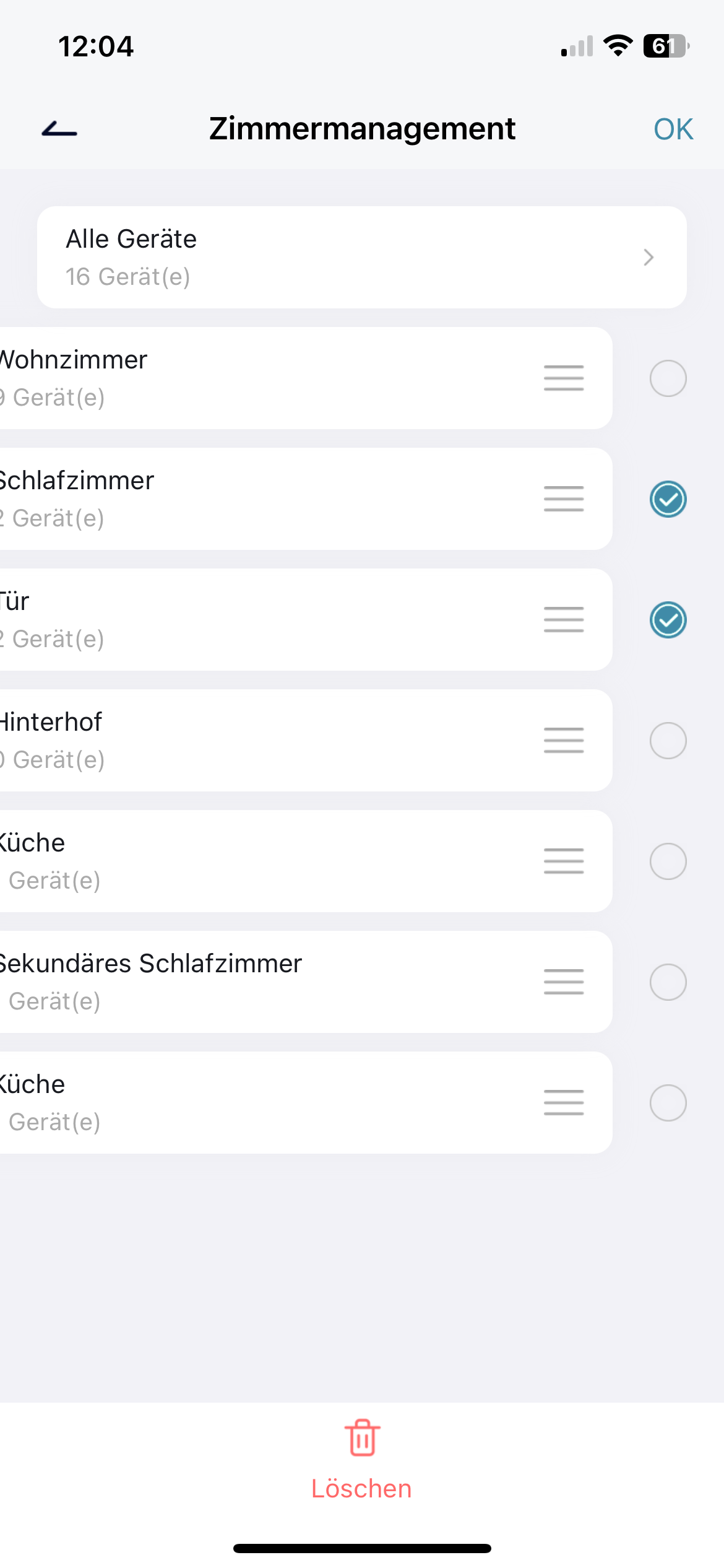 4. Dir wird anschließend eine große Auswahl an Räumen angezeigt. Und denk dran deine Auswahl zu bestätigen bzw. zu speichern, damit die neue Zuordnung übernommen wird.