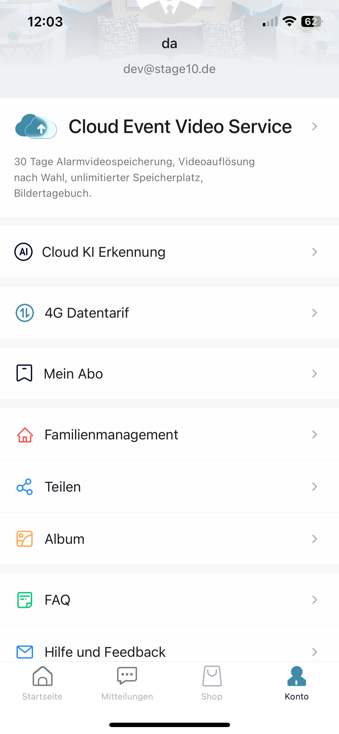 5. Zuordnung von allen Kameras und Verwalten de Räume! Wenn du in die allgemeinen Einstellungen gehst und dort das Menü Familienmanagement auswählst, dann kannst du dort gleich alle bei dir in der App angebundenen Kameras verwalten.