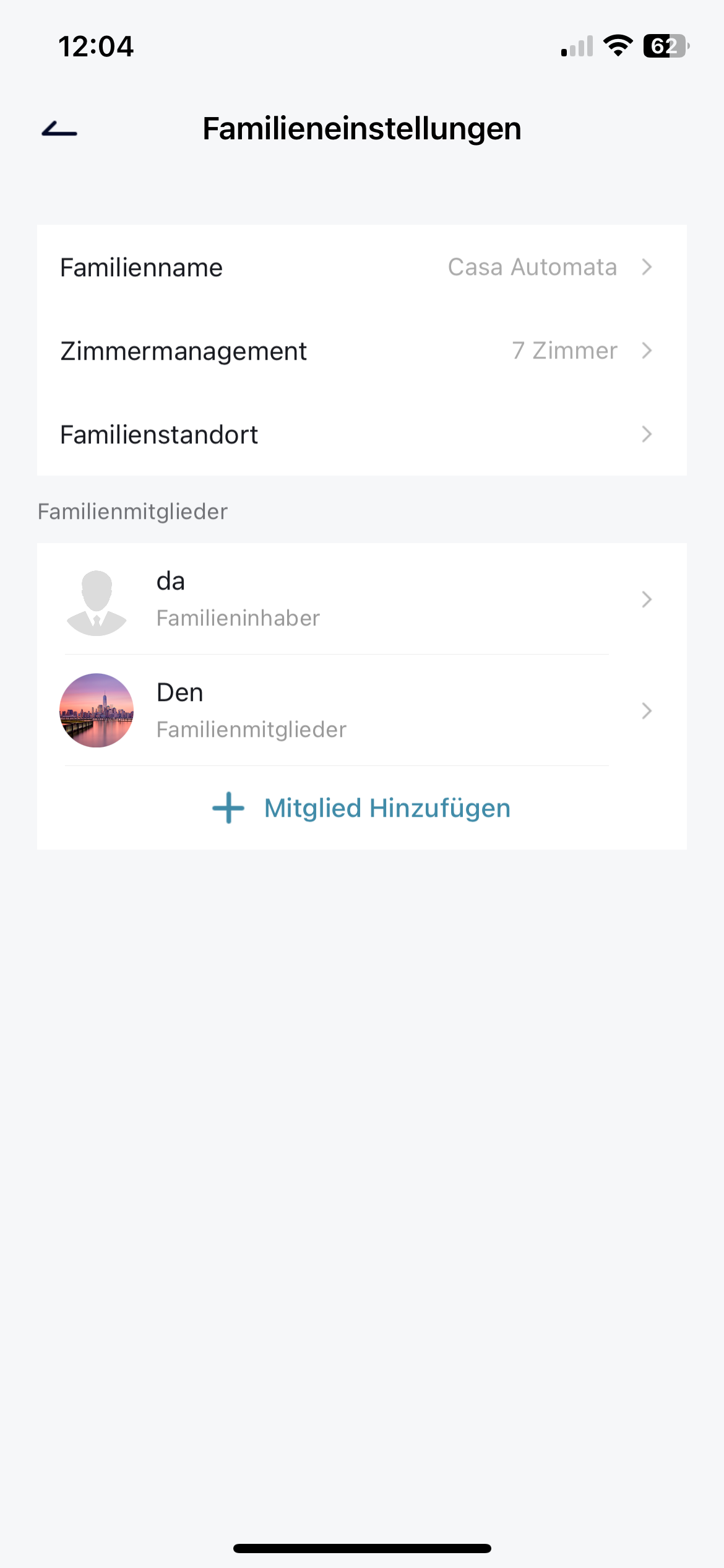 7. In der nächsten Übersicht wird dir die Familie, die Anzahl der Zimmer etc. angezeigt. Du siehst auch die Mitglieder der Familie und kannst diese jeder Zeit entfernen oder neue Mitglieder hinzufügen. Wenn du nun auf Zimmermanagement klickst, dann lassen sich anschließend alle Räume bearbeiten und alle Kameras den Räumen zuordnen.