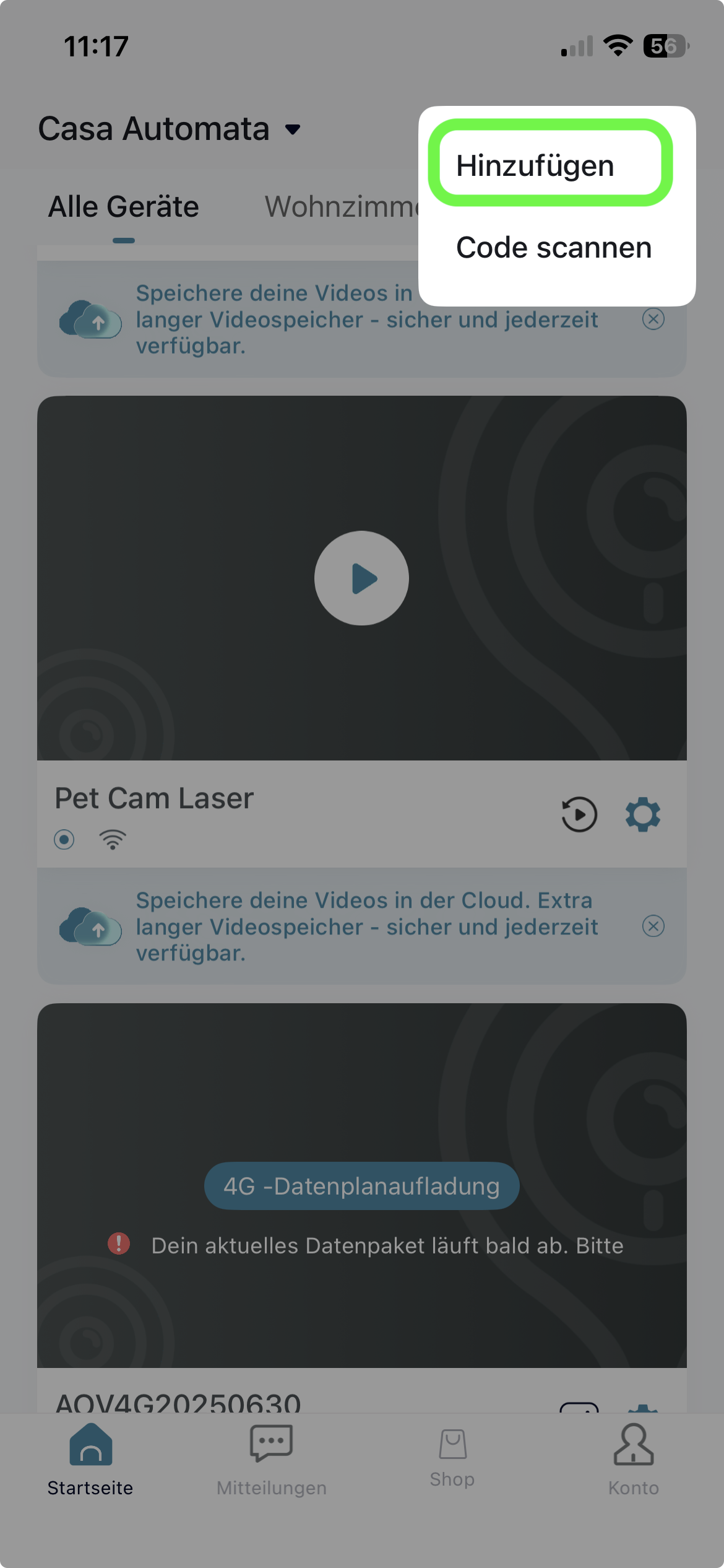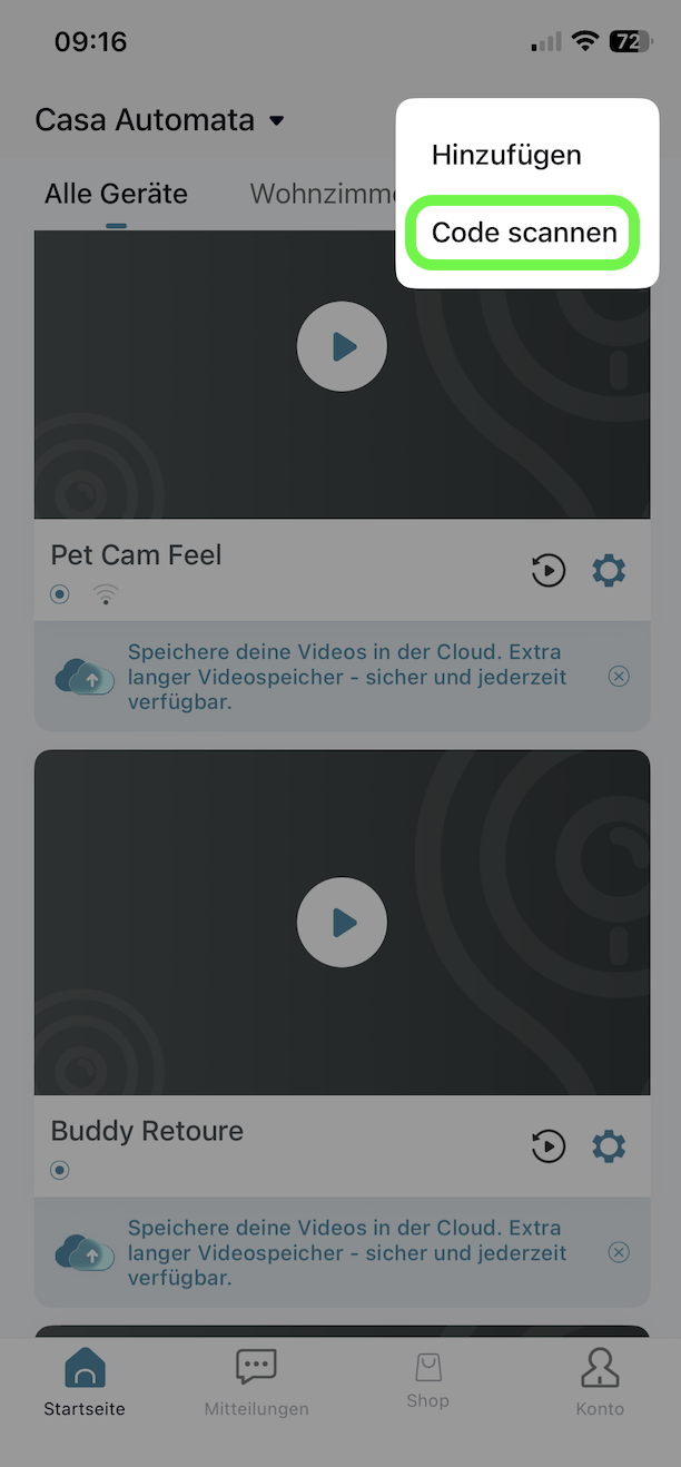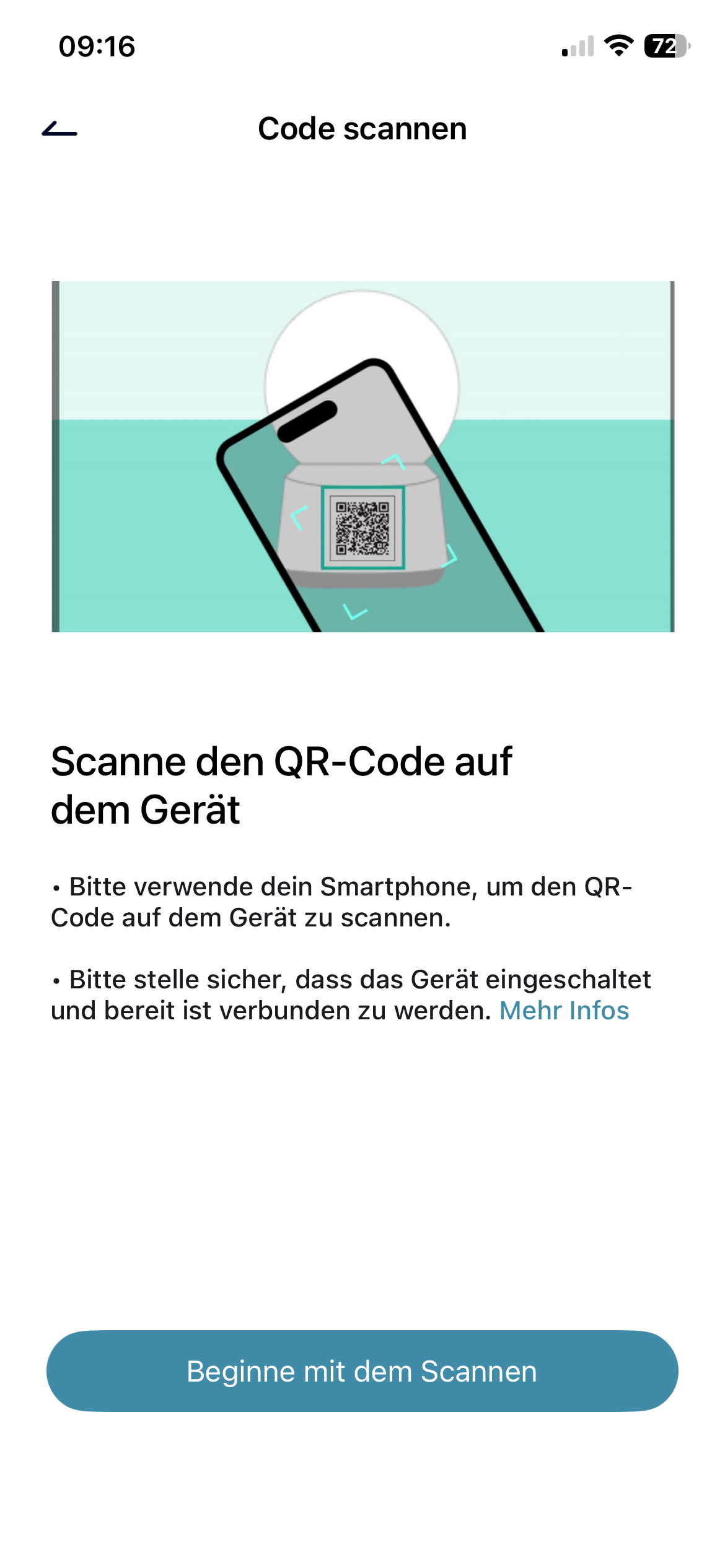 QR-Code auf dem Gerät scannen: Die aktuelle Methode die noch immer verwendet wird ist ähnlich einfach. Klicke auch hier auf das "+"-Zeichen und anschließend "Code Scannen" drücken. Nun wir dir in der App erklärt, wo du den Code zum Scannen auf deinem Gerät findest. Wichtig: Es gibt aktuell noch zwei QR-Codes auf dem Gerät, einer davon ist aber um auf unsere Support Website zu gelangen. Dieser QR-Code ist sogar mit Support Website beschrieben und sollte nicht mit der PetTec App gescannt werden. Es würde nichts schlimmes passieren, aber du kannst mit diesem QR-Code deine Kamera nicht mit der App verbinden. Um in Zukunft Verwechselungen zu verhindern, werden wir ab Ende 2025 den Support Website QR-Code von allen Geräte entfernen, so dass nur noch der Verbindungs-QR-Code auf dem Gerät zu finden ist. Also den hier abgebildeten QR-Code nicht scannen um deine Pet Cam mit der App zu verbinden.