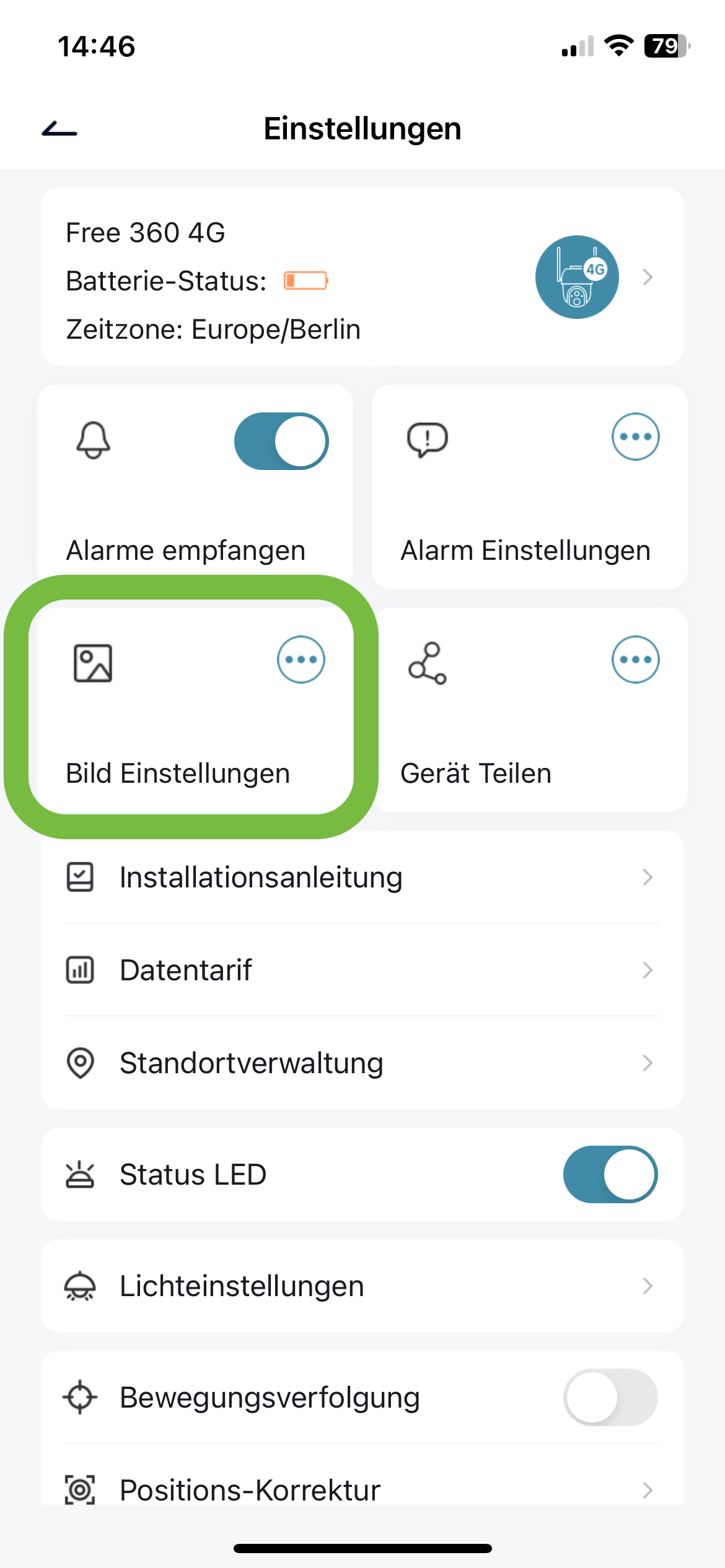 1. Gehe zu den Kameraeinstellungen bei der du das Bild um 180° drehen möchtest