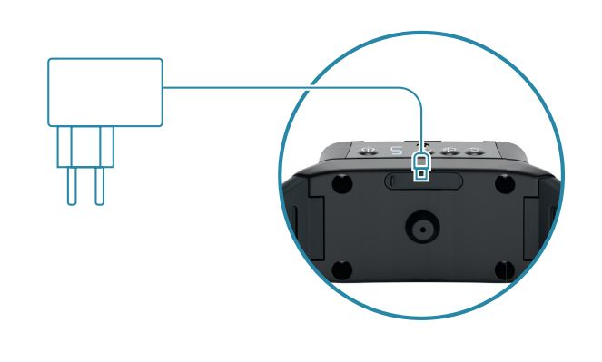 - Öffne zum Laden die Gummiabdeckung auf der Unterseite des Multi Trainer und stecke das Micro-USB-Ladekabel in die dafür vorgesehene Öffnung.