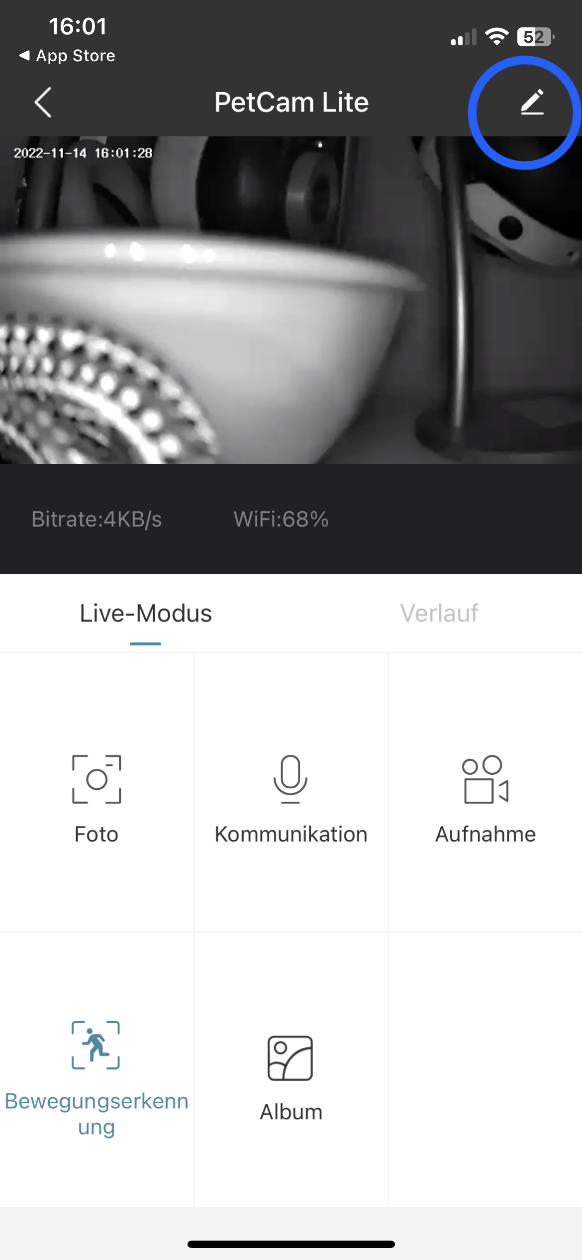 Wichtiger Hinweis: Um jetzt die Pop-Up Benachrichtigungen zu jeder erkannten Bewegung zu erhalten, muss der PetTec App erlaubt worden sein, diese Benachrichtigungen senden zu dürfen! Die Erlaubnis wird über die Einstellungen des Smartphones vergeben!