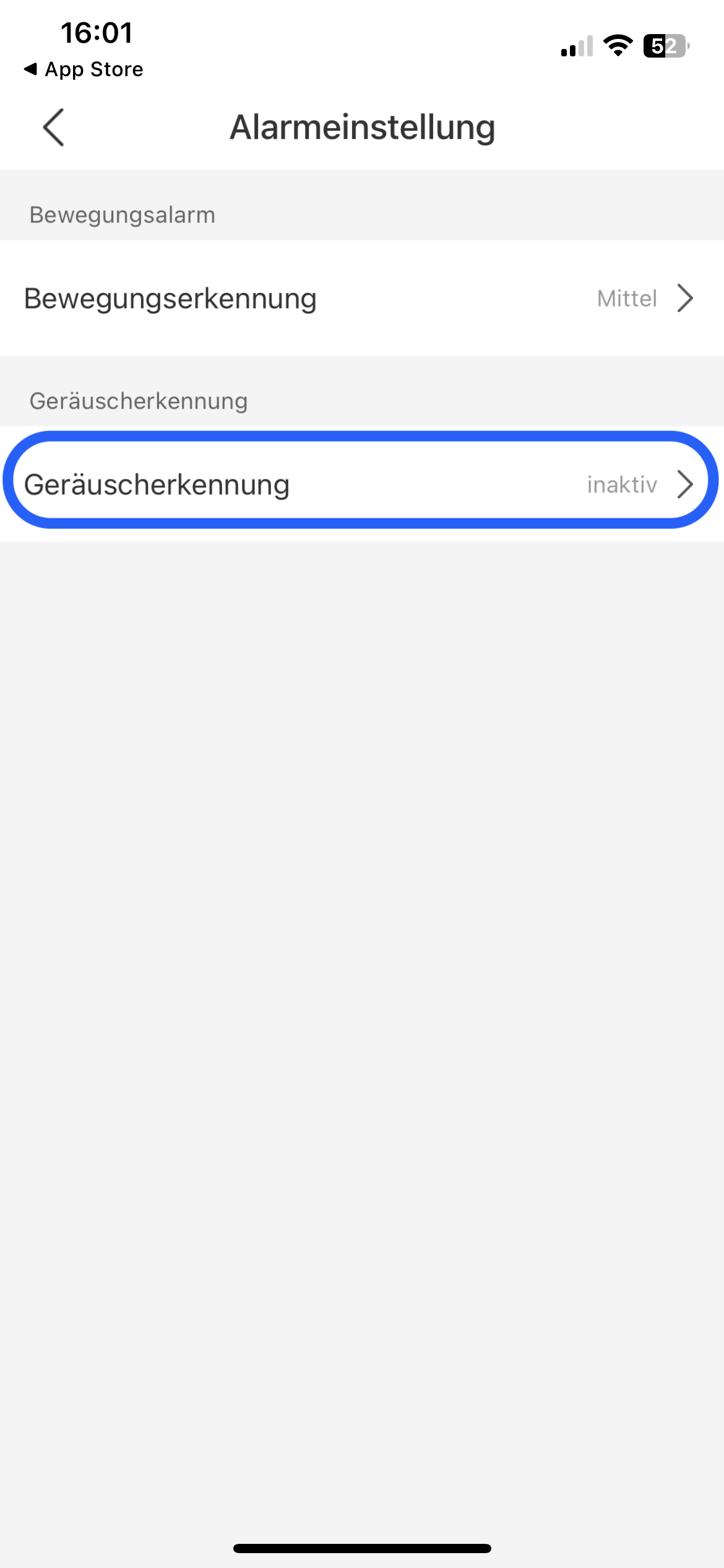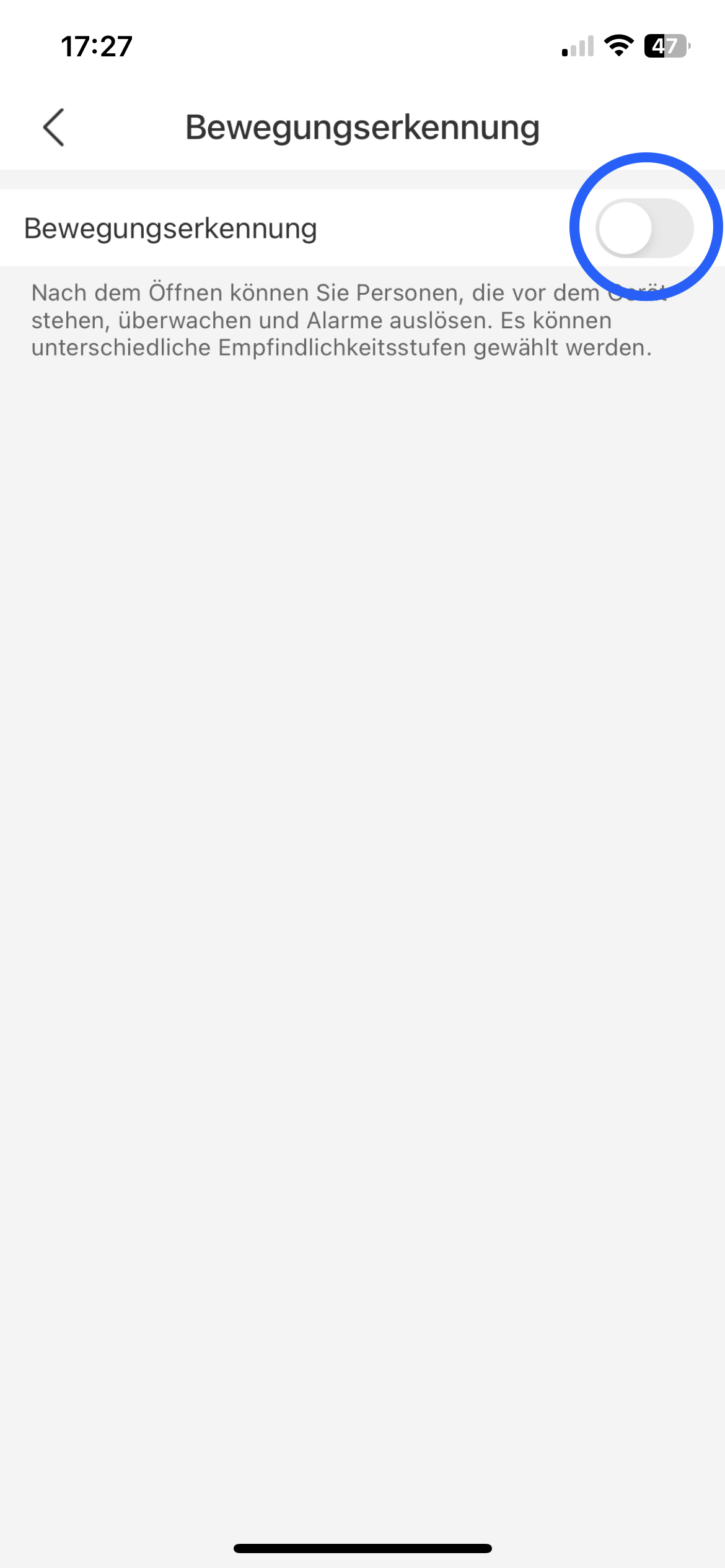 Schritt 4: Zum Aktivieren der Bewegungserkennung bitte den blau markierten Bereich anklicken