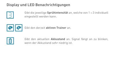Nachfolgend findest du die Übersicht der LED Anzeige des Trainers sowie der Fernbedienung: